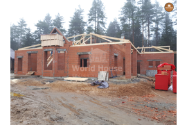 Строительство одноэтажного коттеджа с мансардой по проекту №57.