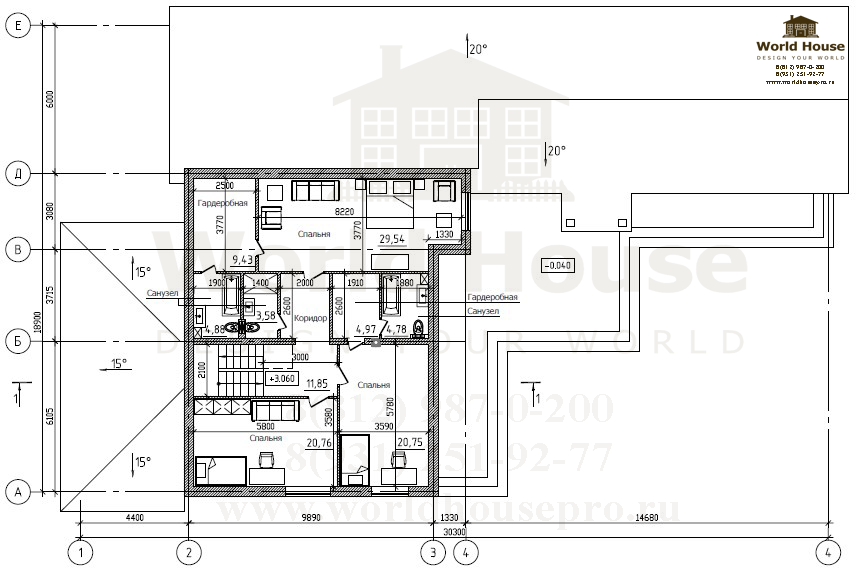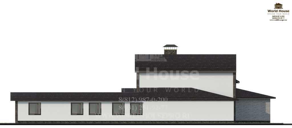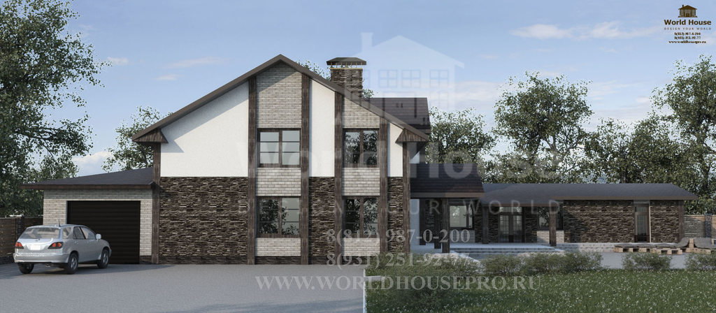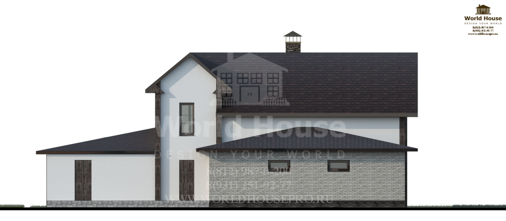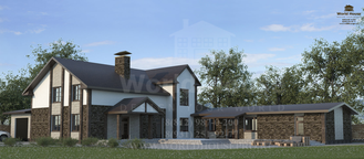 Одноэтажный дом из газобетона с мансардным этажом общей площадью 377.25 м2.