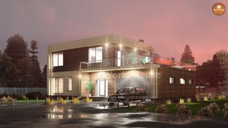 Стены наружные - газобетон 400мм с навесным фасадом и облицовкой панелями KMEW.