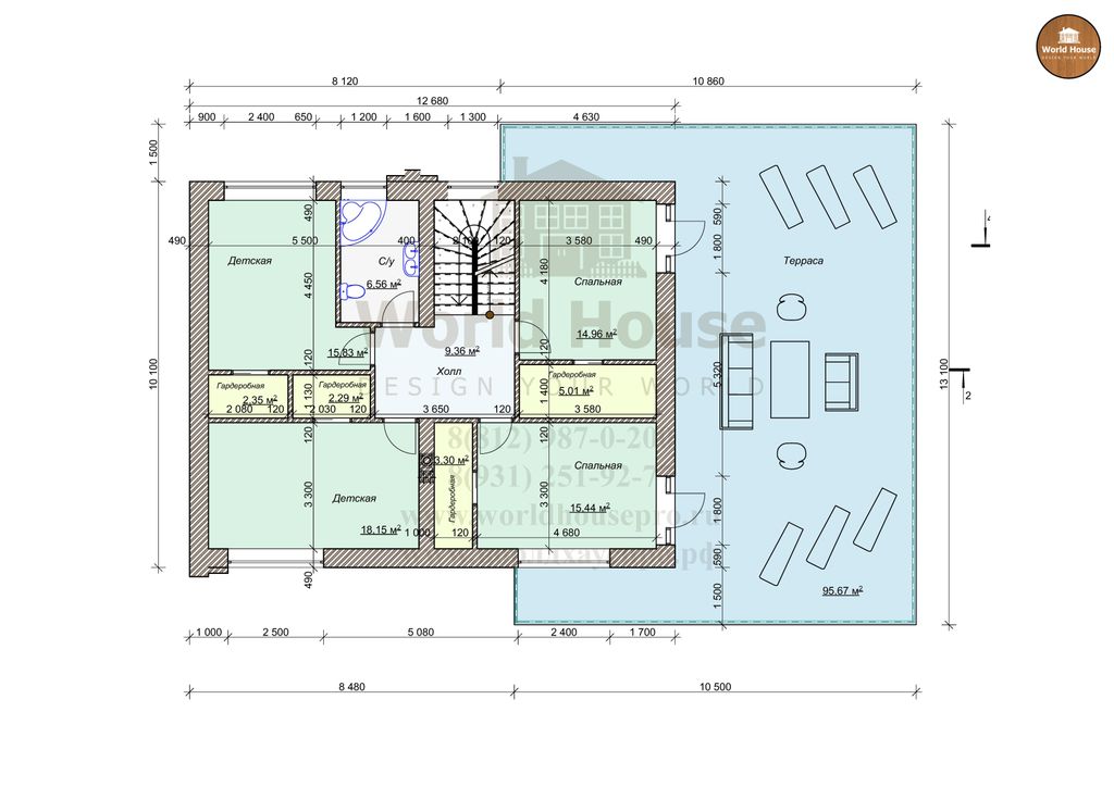 Эксплуатируемая терраса с выходом из спален второго этажа;