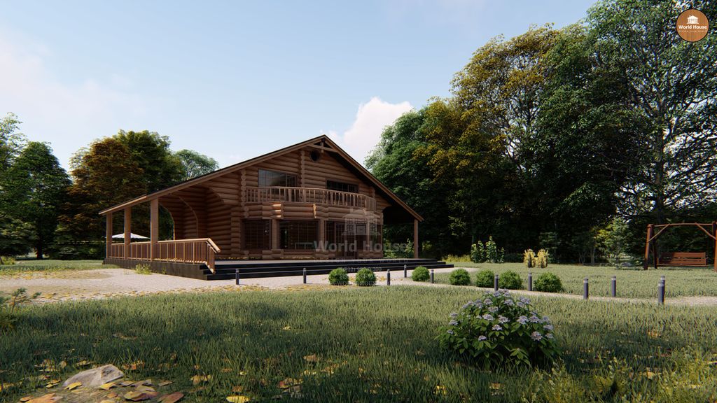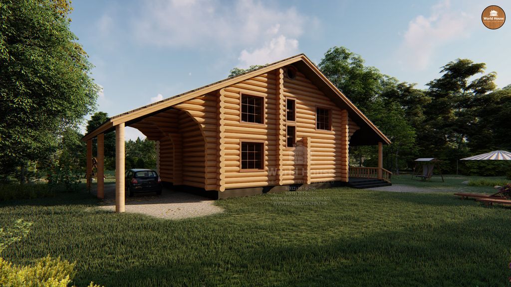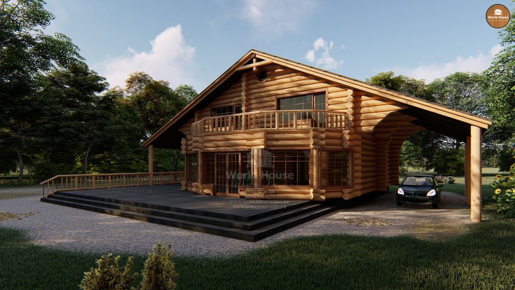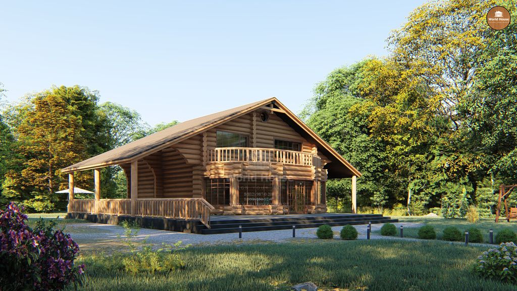 Проект загородного дома из бревна. С первым полноценным этажом и мансардой.