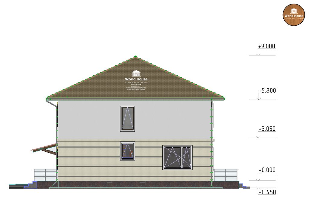 Наружные стены - Газобетон 400мм с облицовкой декоративной штукатуркой;