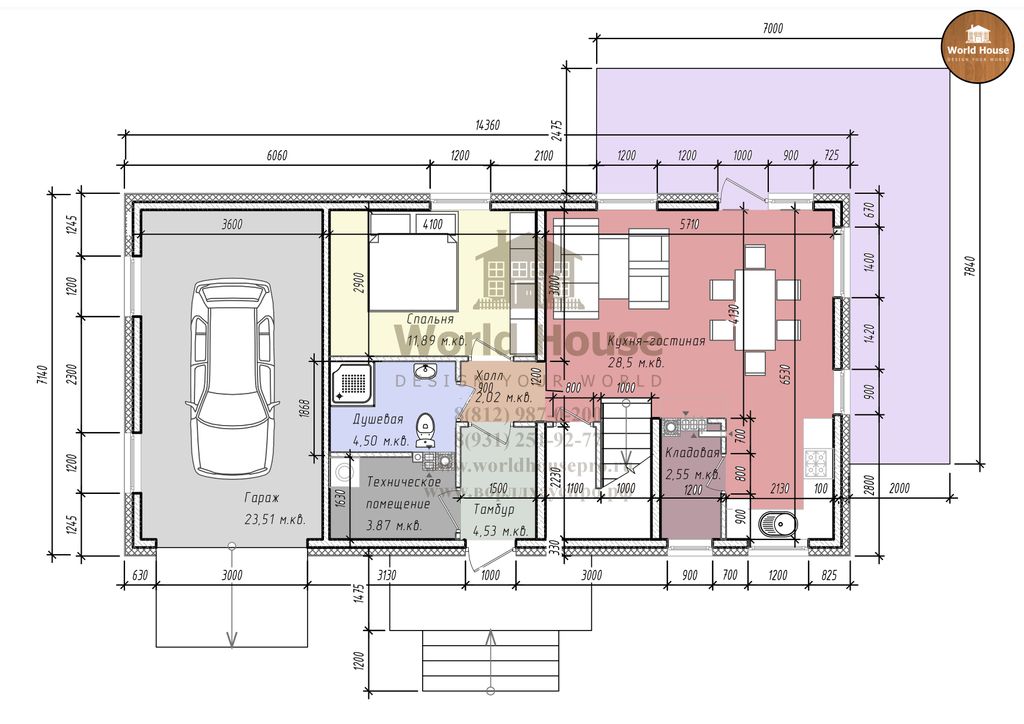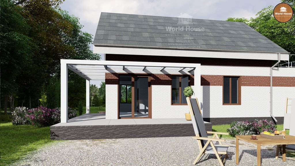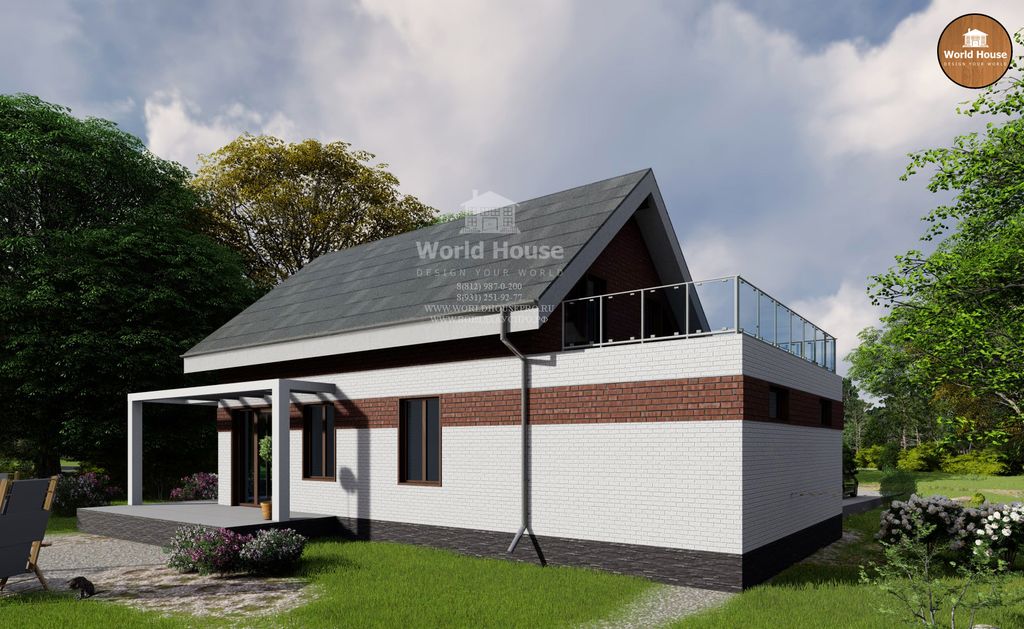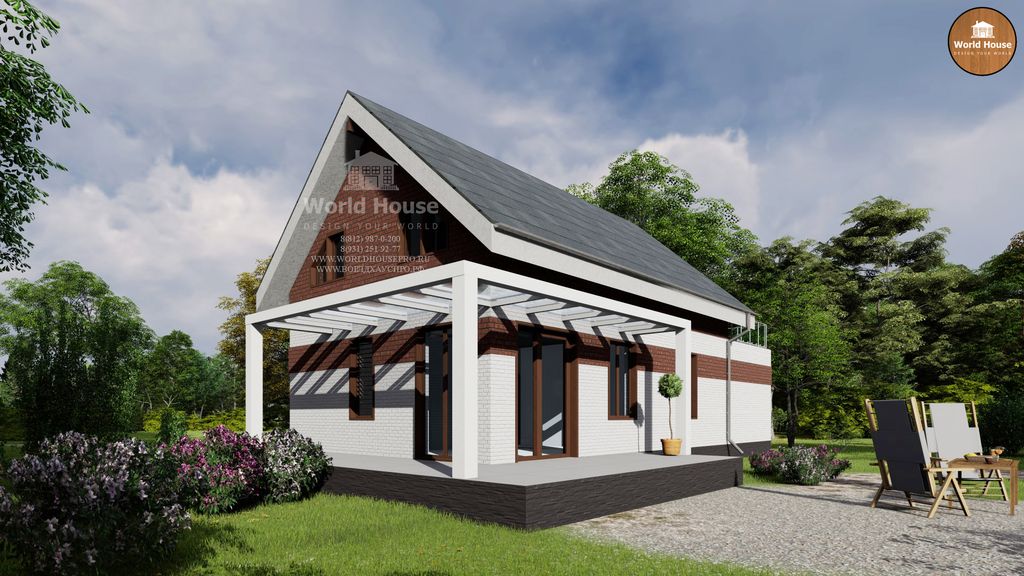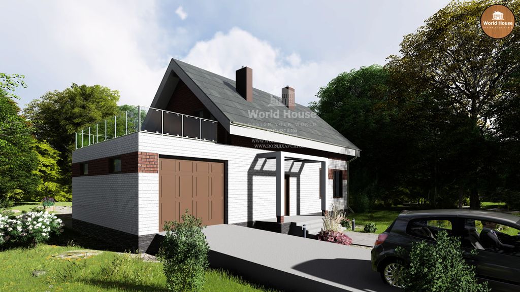 Проект дома - один этаж и мансарда. Открытая терраса и гараж