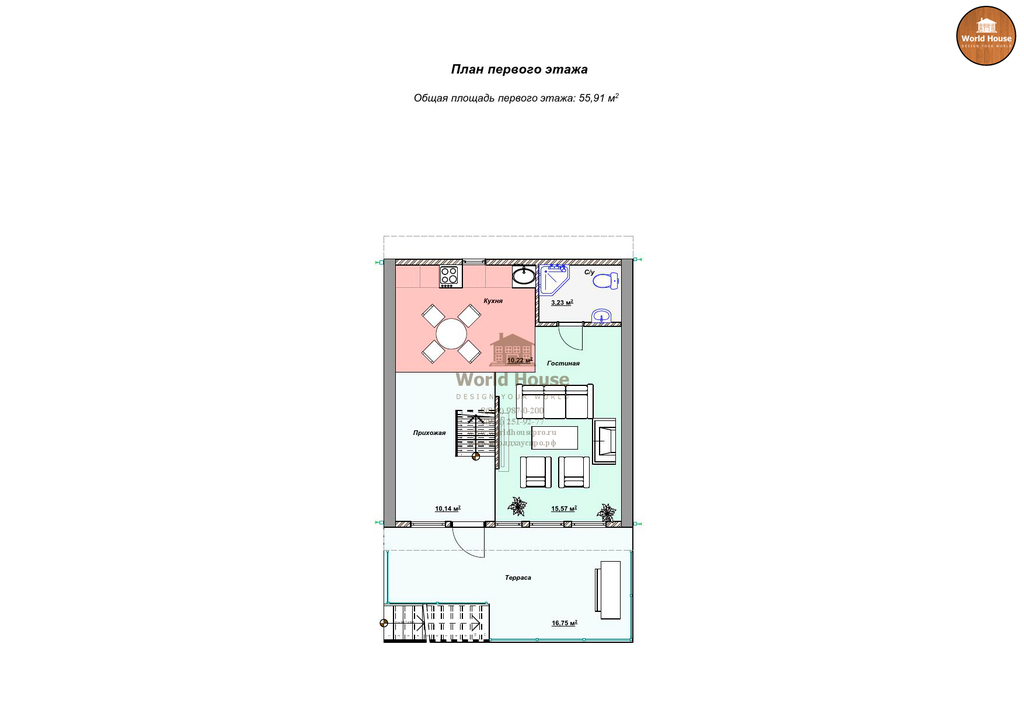 Полезная площадь дома (Без террасы) - 60м2