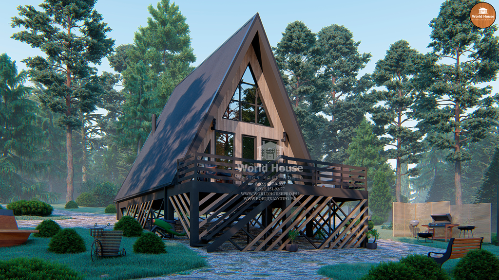 Дом A-Frame площадью 60м2 | Треугольный современный коттедж