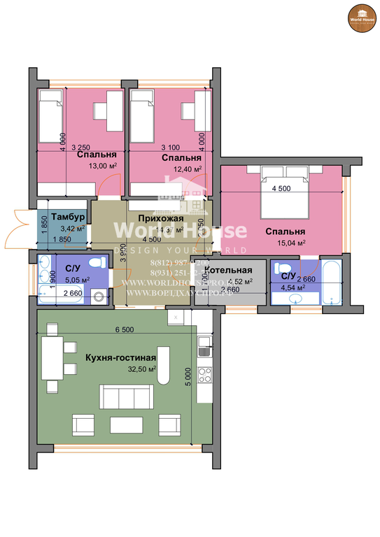 Здравствуйте! Представляем проект, разработанный нашей архитектурной студией "ВорлдХаусПро"!