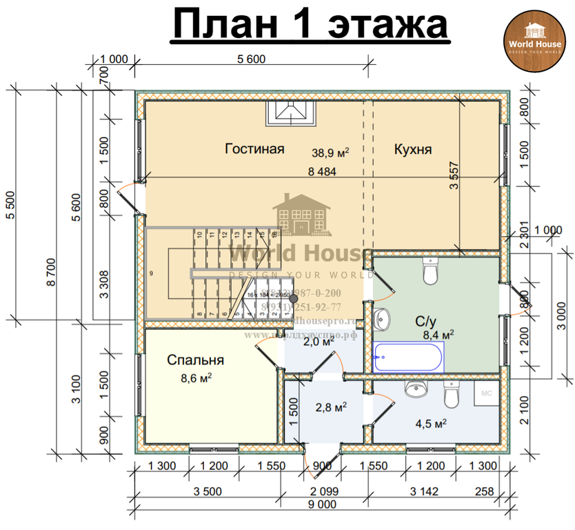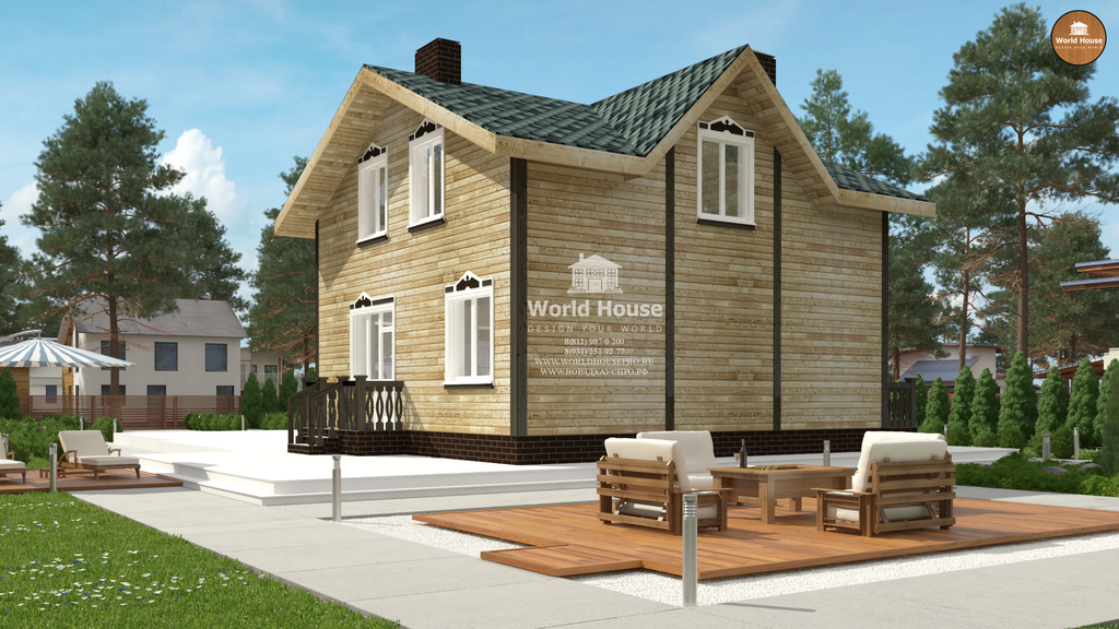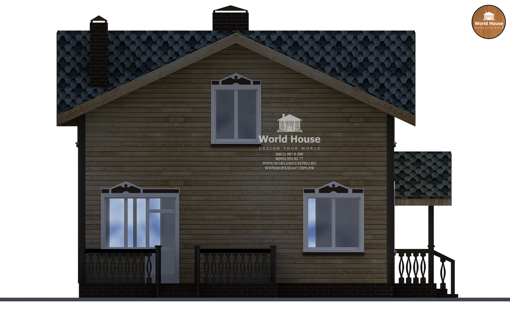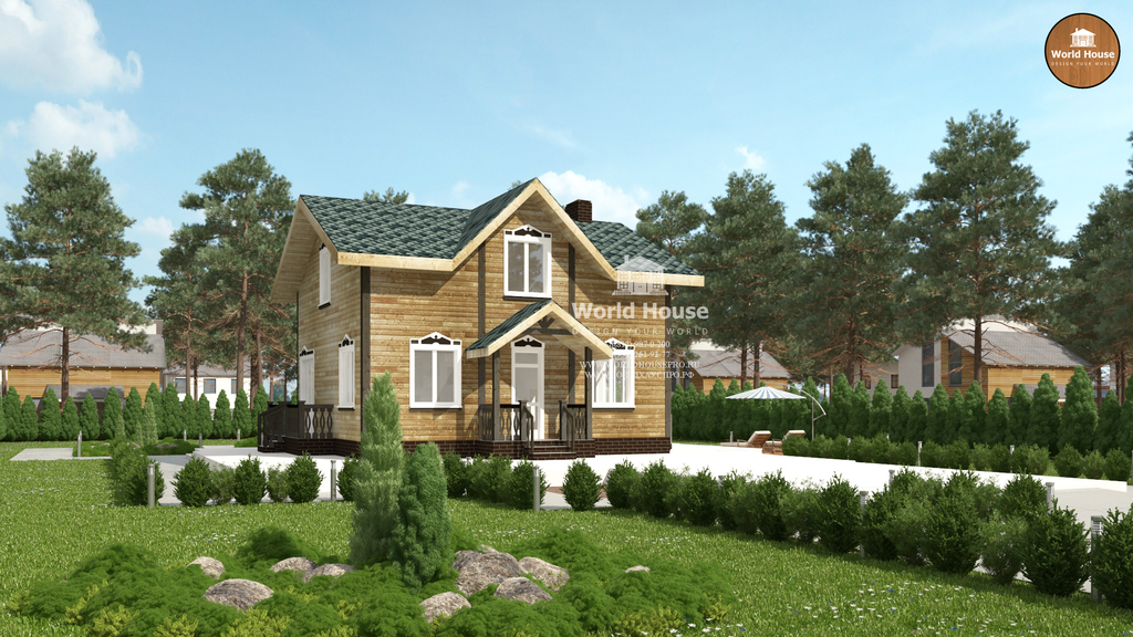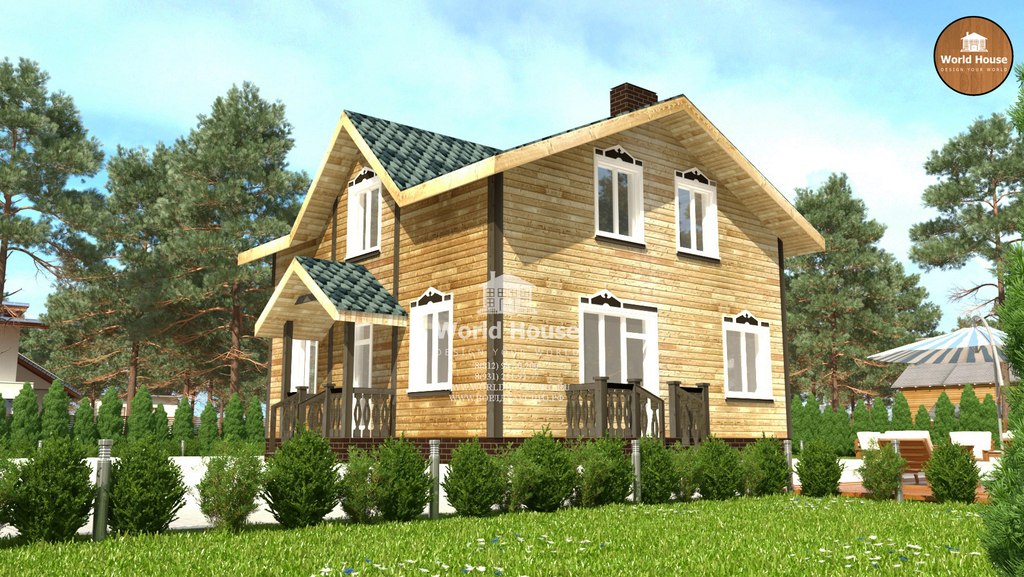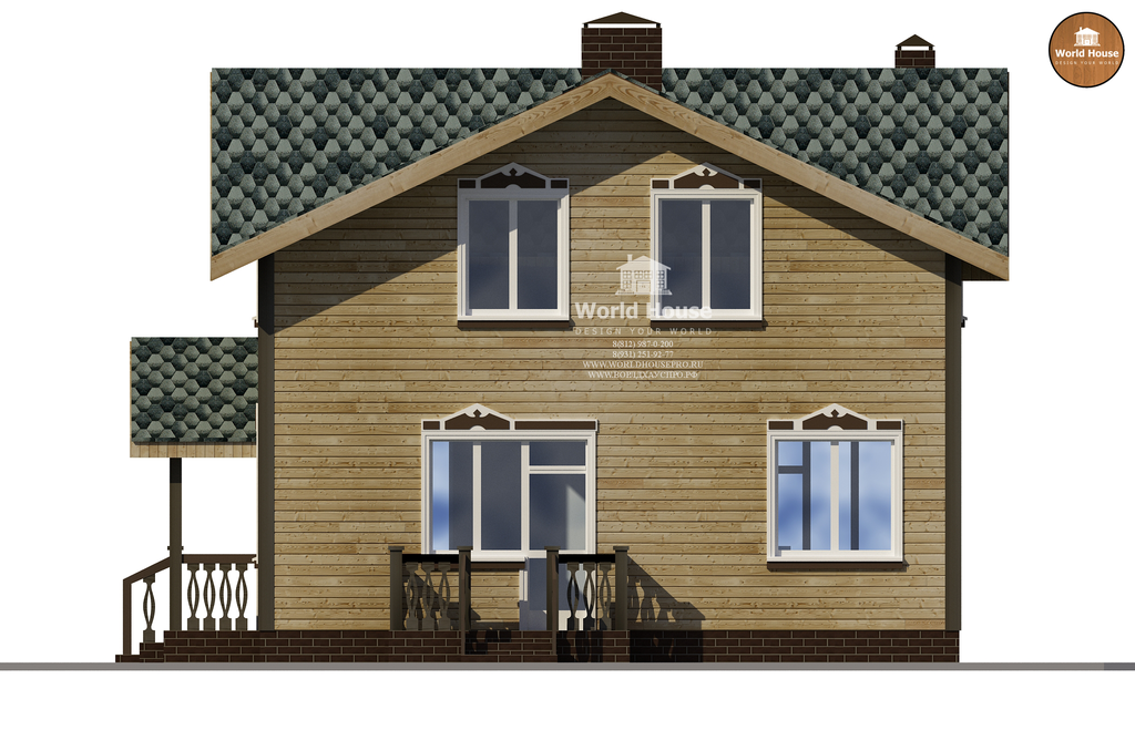 Проект каркасного дома с отделкой имитацией бруса. Двухэтажный дом площадью 131 м2