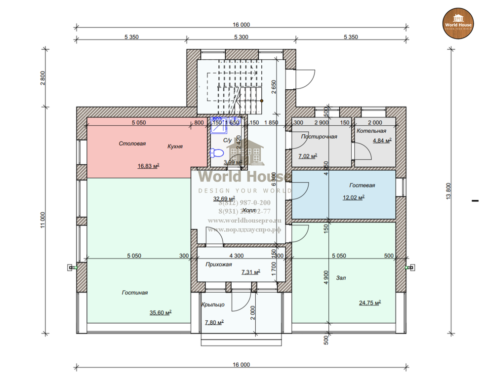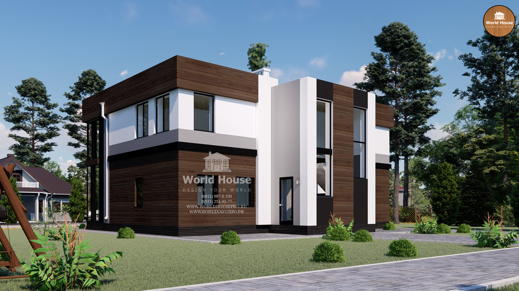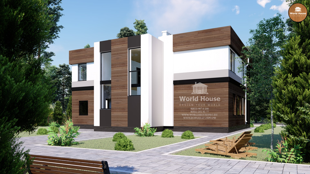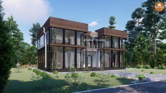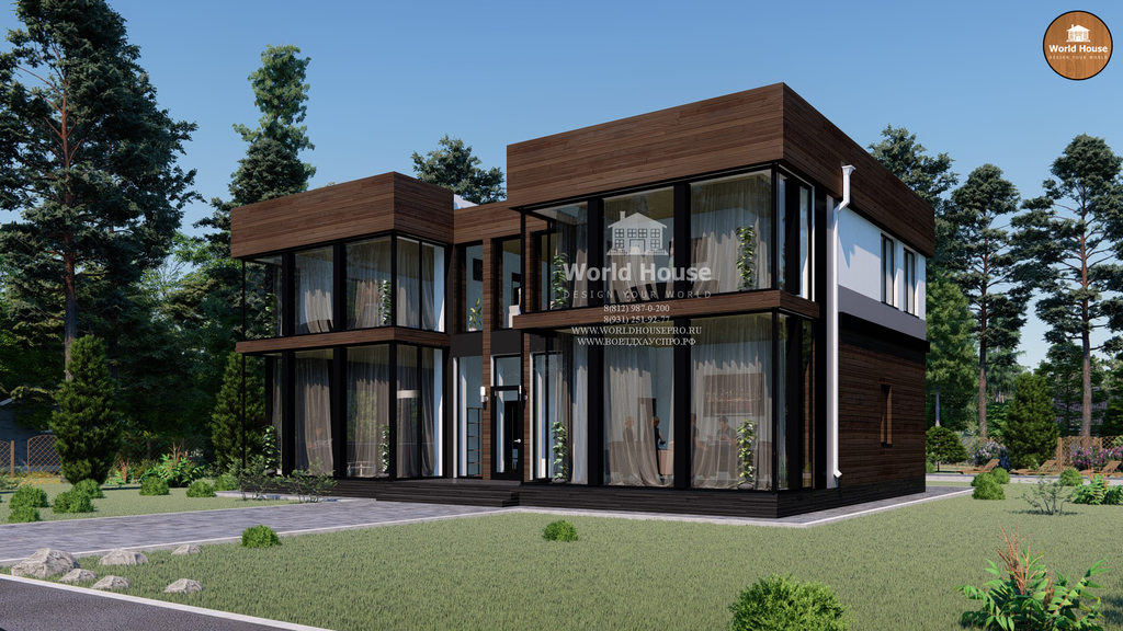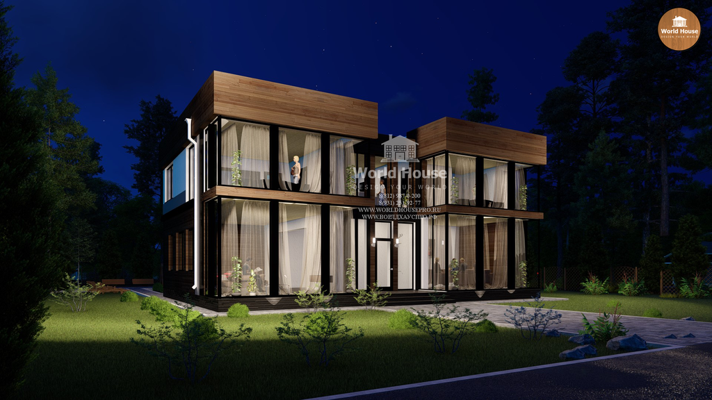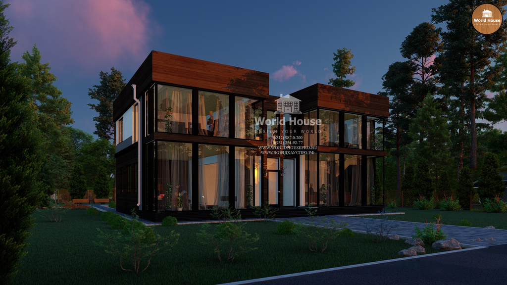 Двухэтажный дом с панорамными окнами - газобетон + монолитный каркас.