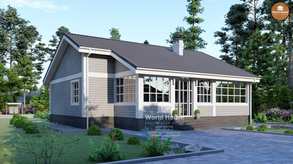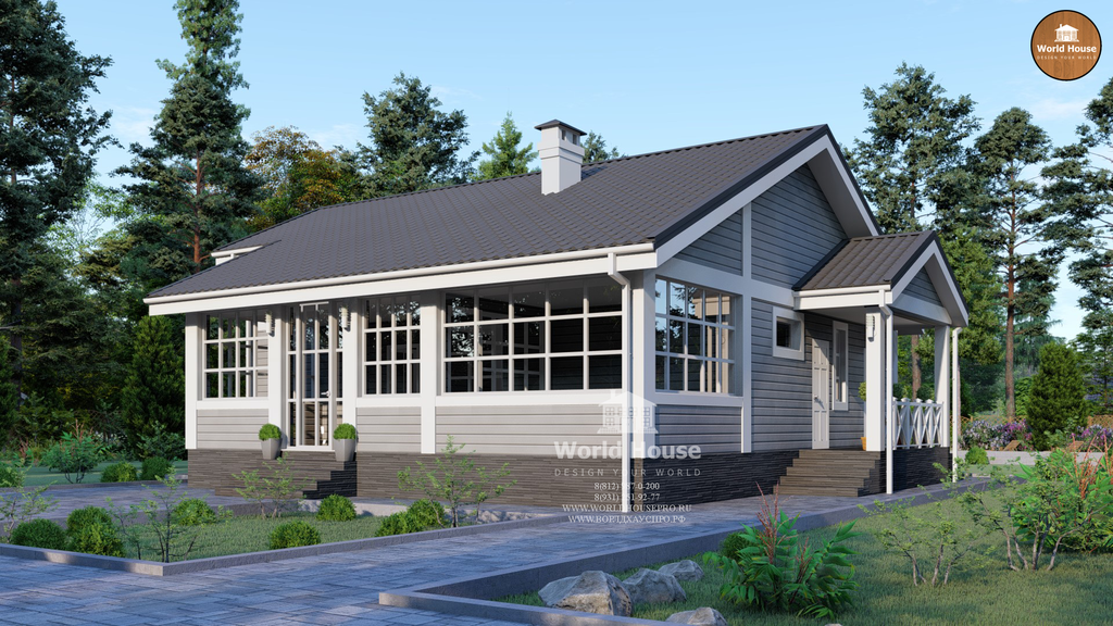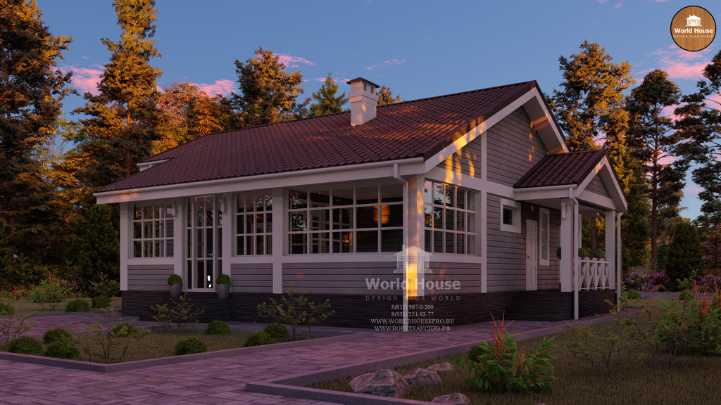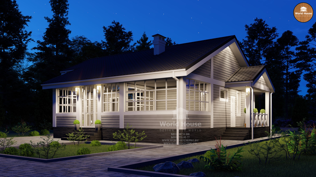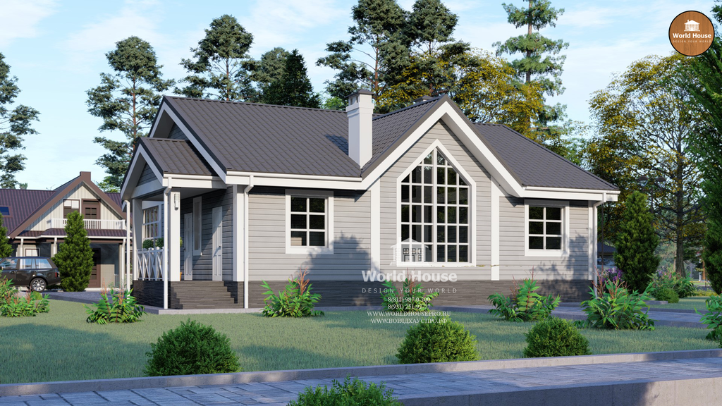 Одноэтажный каркасный дом, со вторым светом в гостинной.
