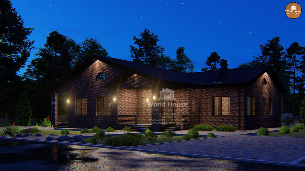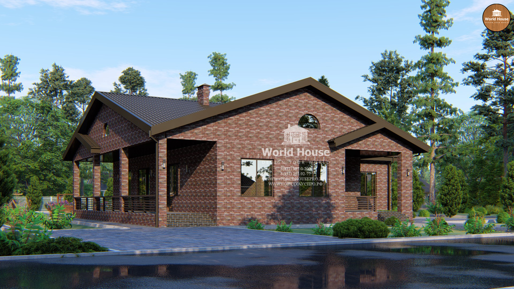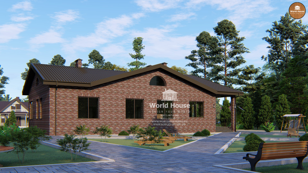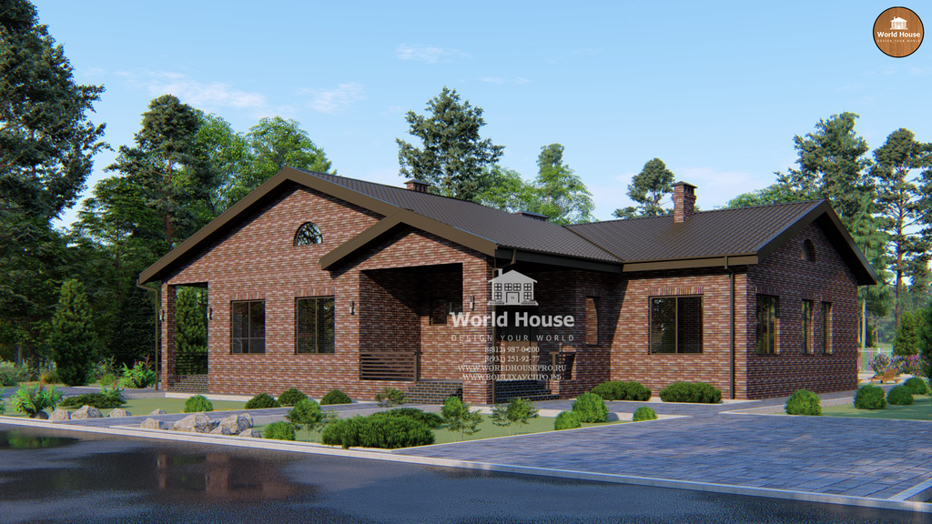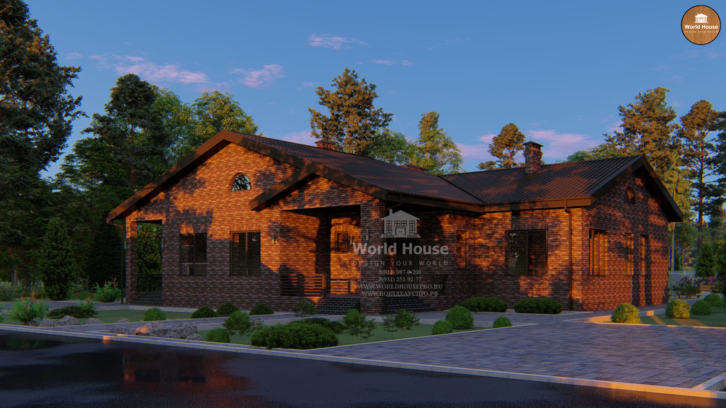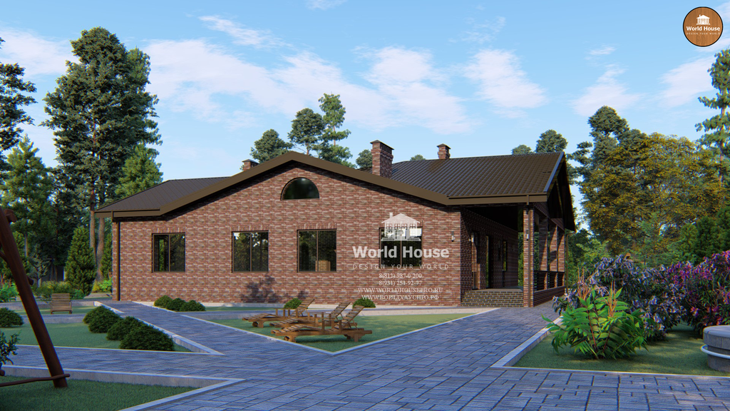 Одноэтажный дом из крупноформатного кирпича.