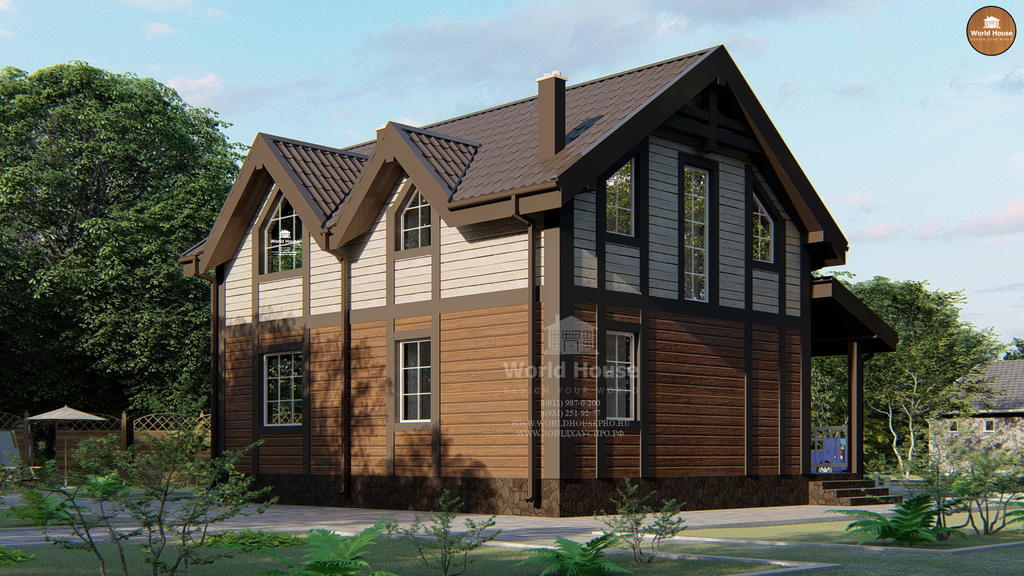 Проект каркасного дома с мансардой площадью 120 м2.
