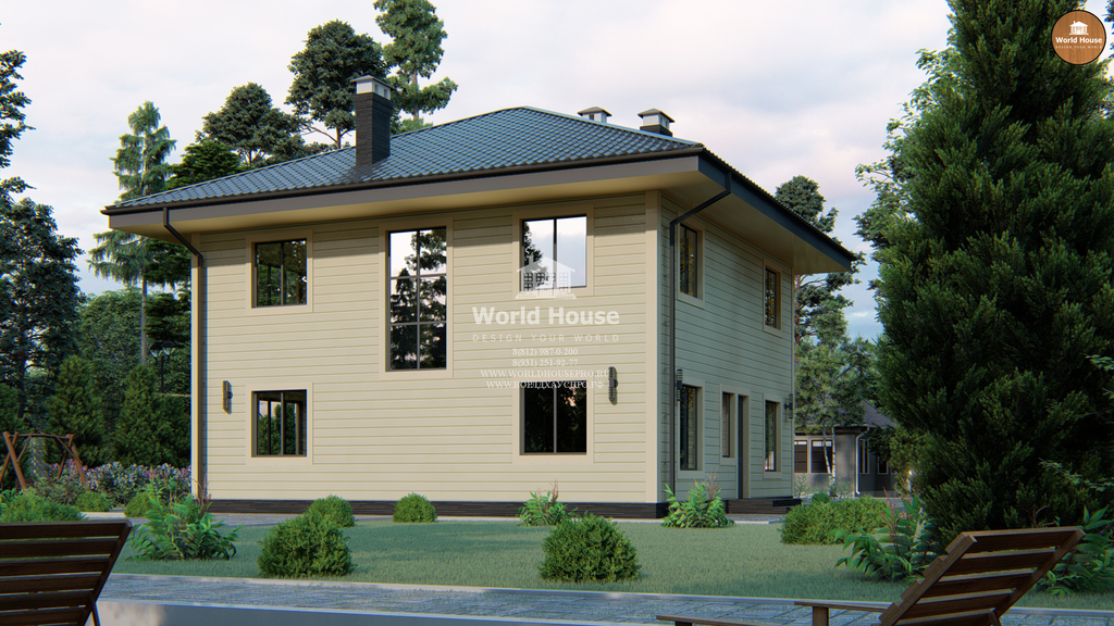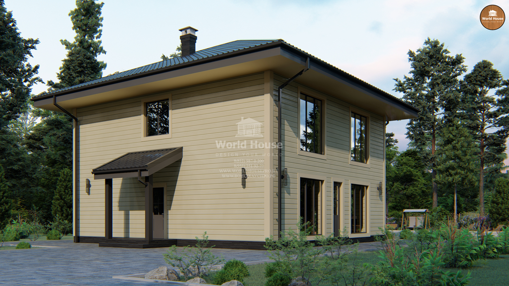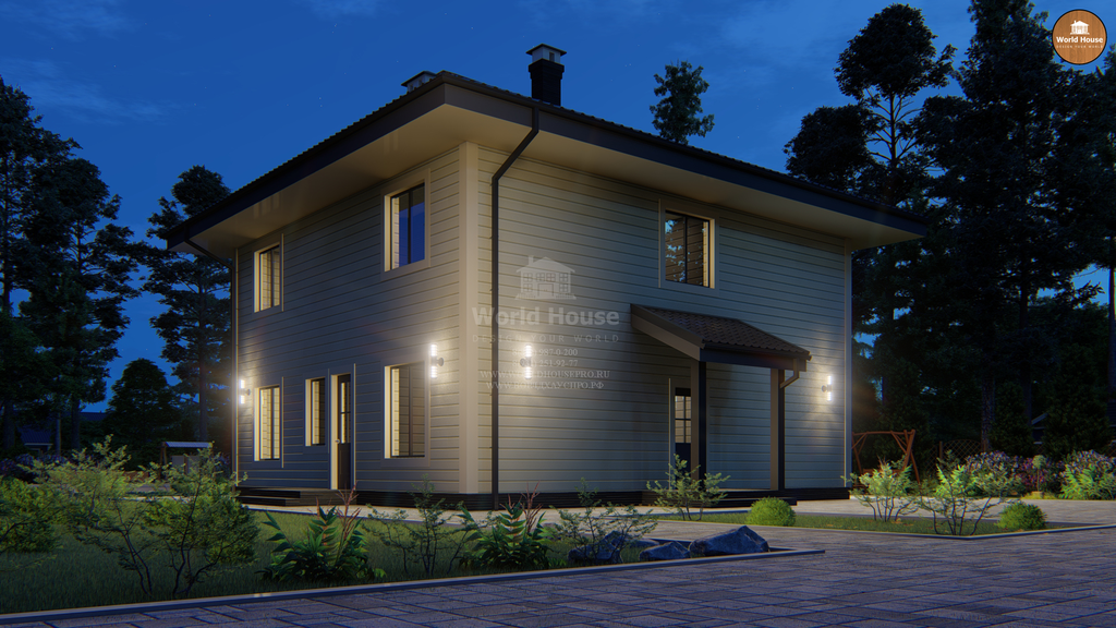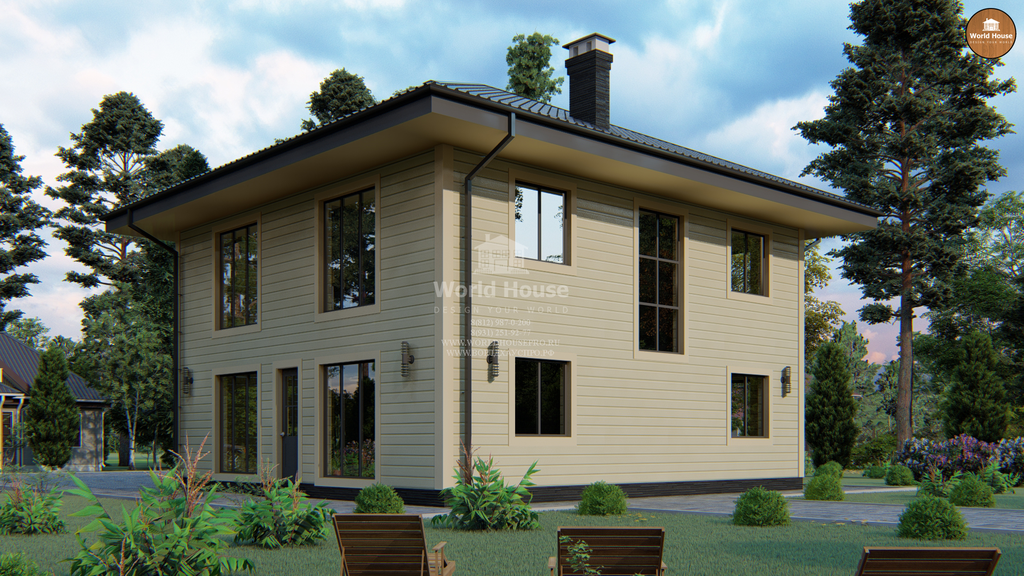 Каркасный загородный дом в два этажа.