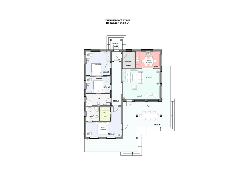 Представляем Вашему вниманию очередной проект, разработанный нашей Архитектурной студией, это одноэтажный дом с применением не совсем стандартно технологии для загородного домостроения – это ЛСТК (легкие стальные тонкостенные конструкции). Площадь дома – 125м2