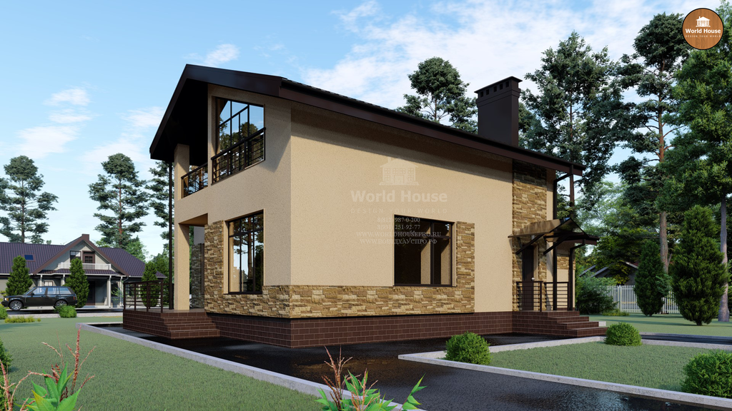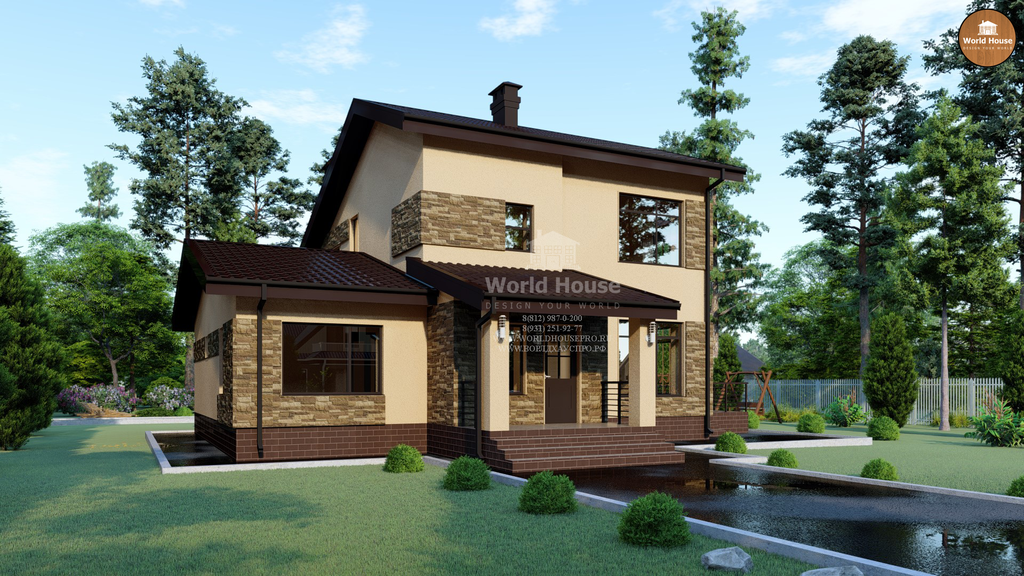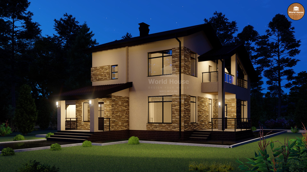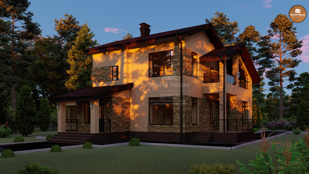 Дом из газобетона в два этажа. Готовый проект с утеплением каменной ватой.
