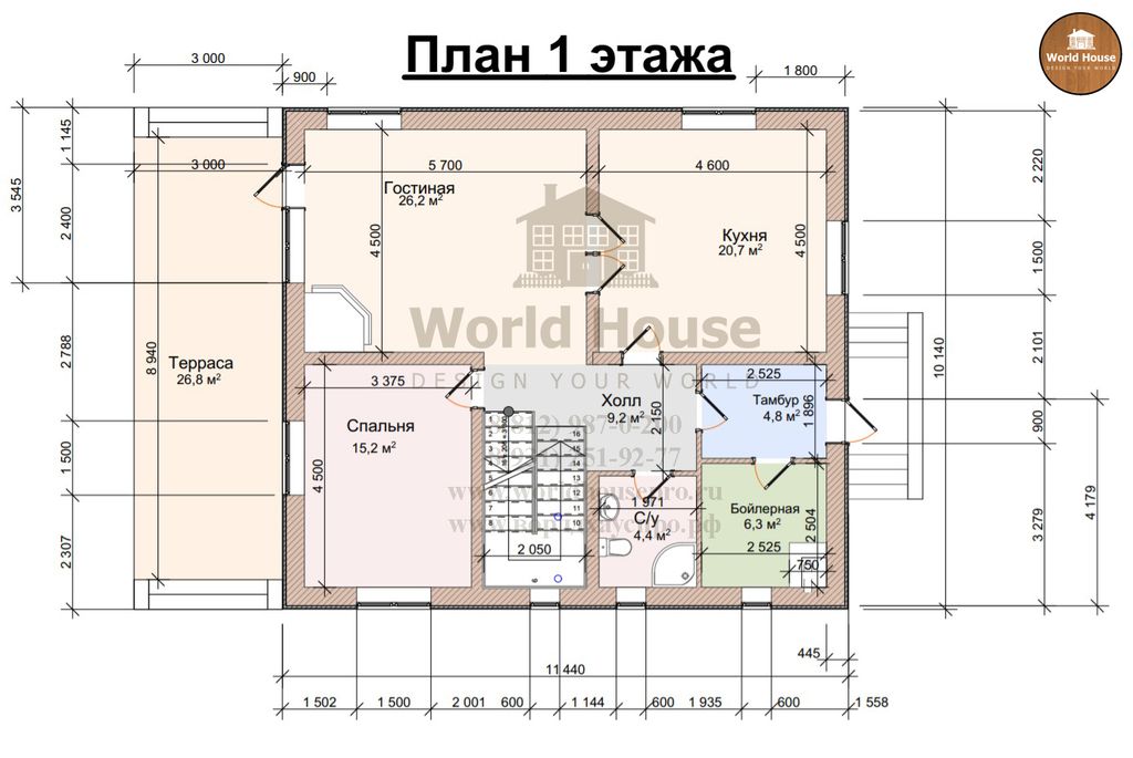 Фундамент: монолитная плита;