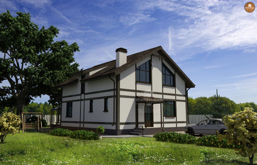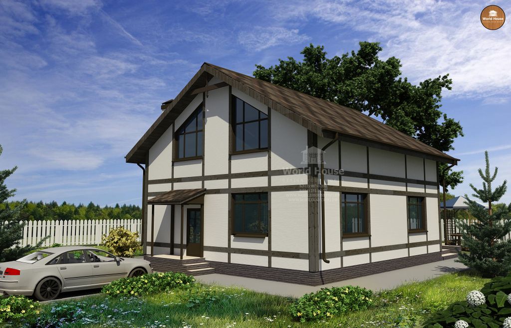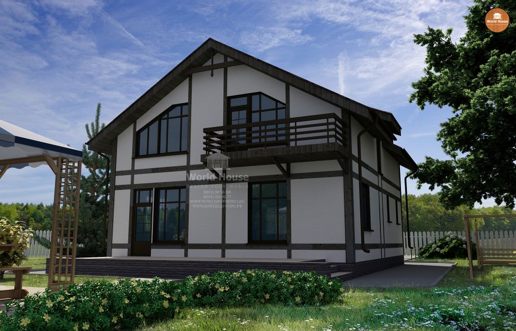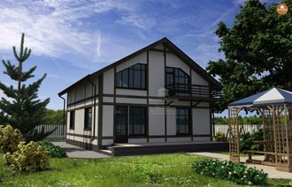 Дом с мансардой из газобетона с балконом. Готовый проект для строительства.