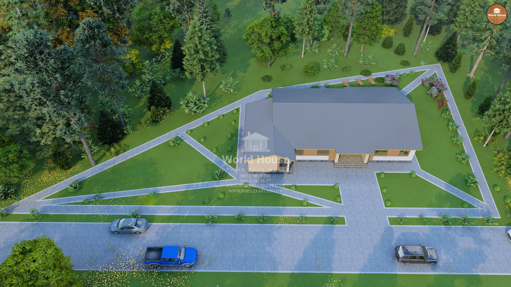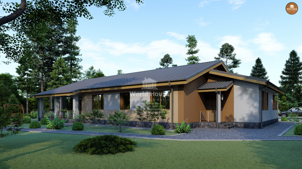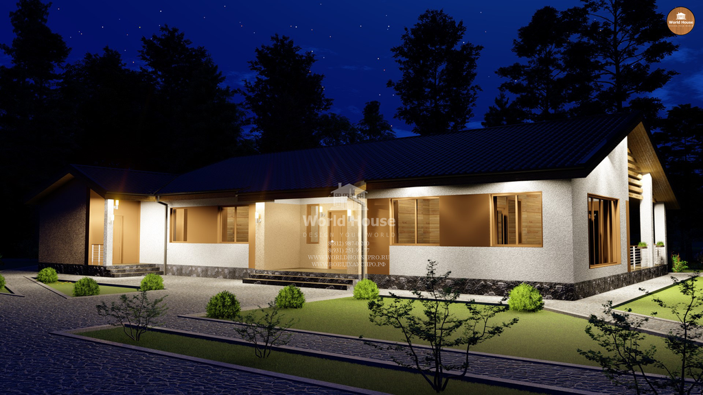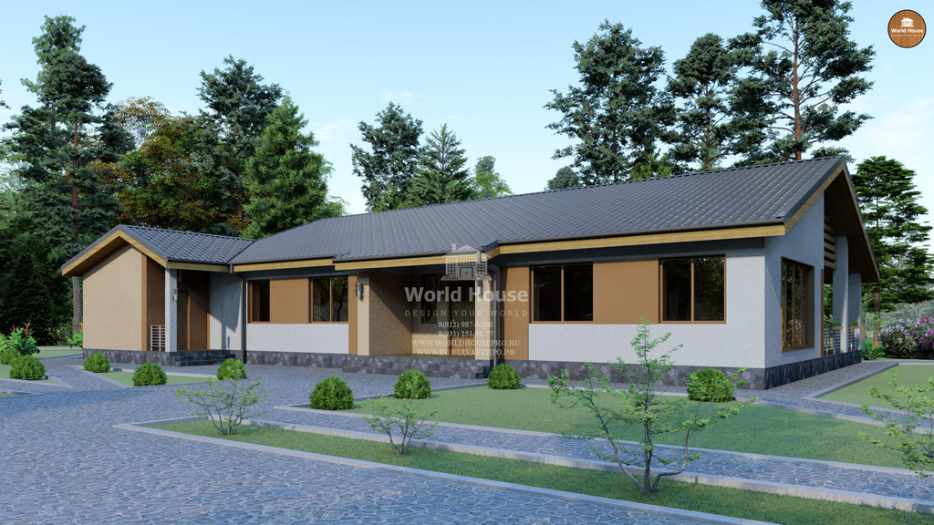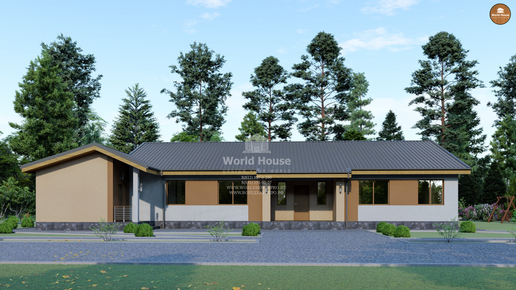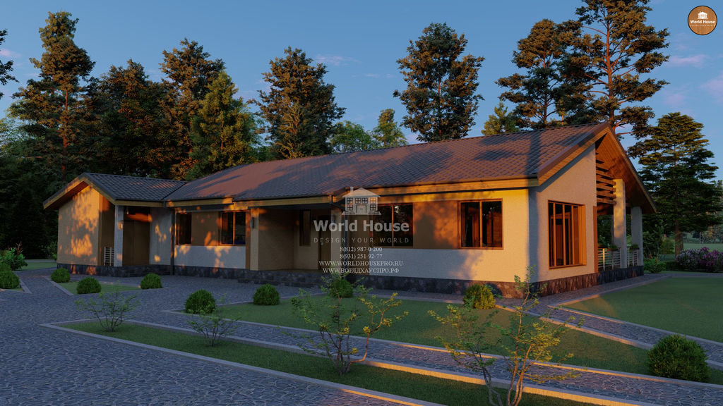 Одноэтажный дом из газобетона с отделкой штукатуркой