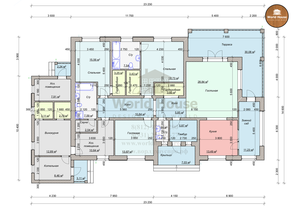 Фундамент: Утепленная плита по верху, с Теплым полом в стяжке.