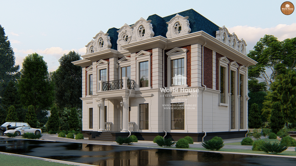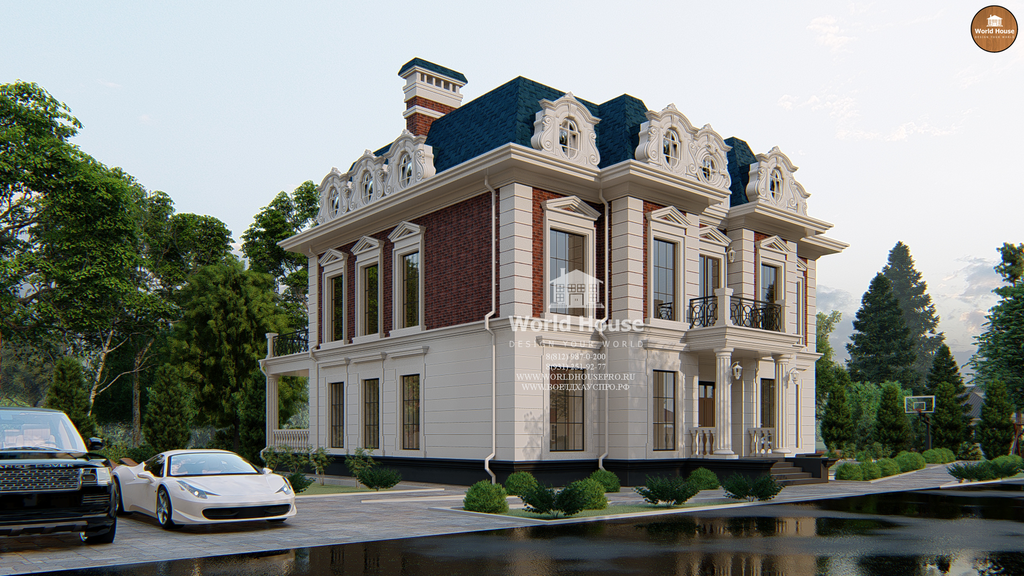 Описание: Двухэтажный особняк с мансардой для свободной планировки пространства,разработан в классическом стиле, с применением натурального камня и кирпича в облицовкефасадов, понравиться хозяину с хорошим вкусом. В доме есть просторная кухня, гостиная совторым светом и большими окнами, 5 спален и 4 санузла.