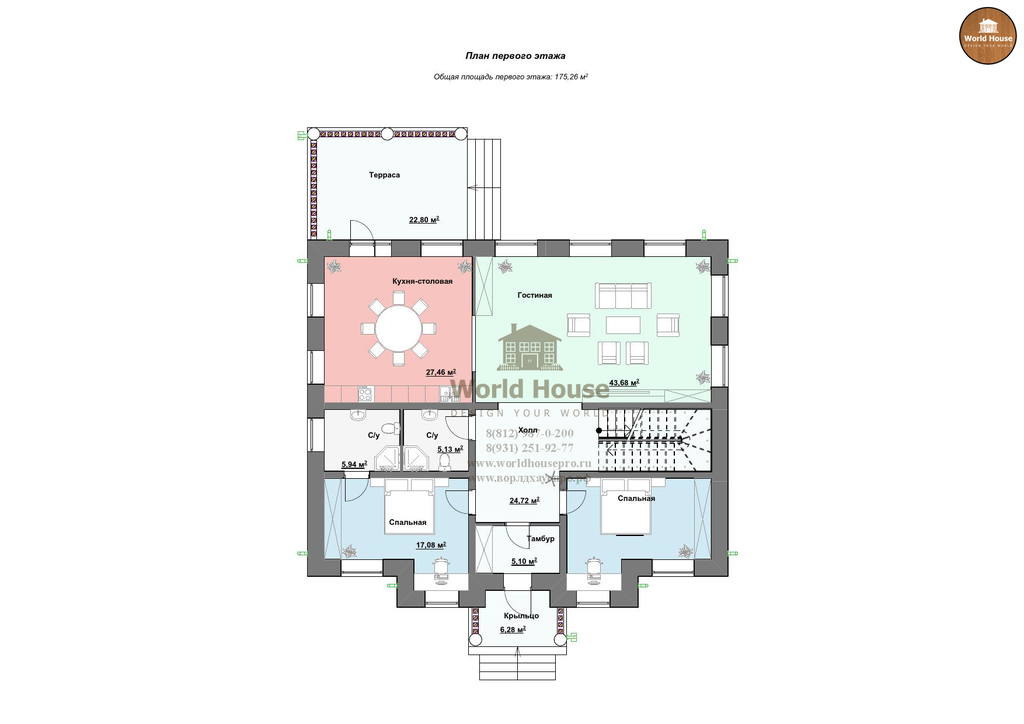 Площадь: 240м2 (без учета балконов и террас)